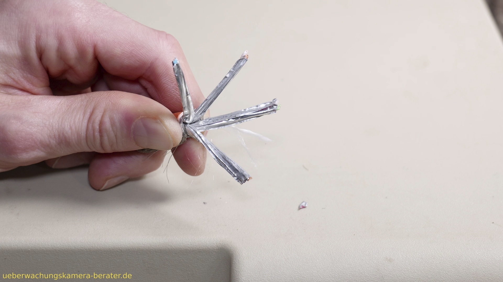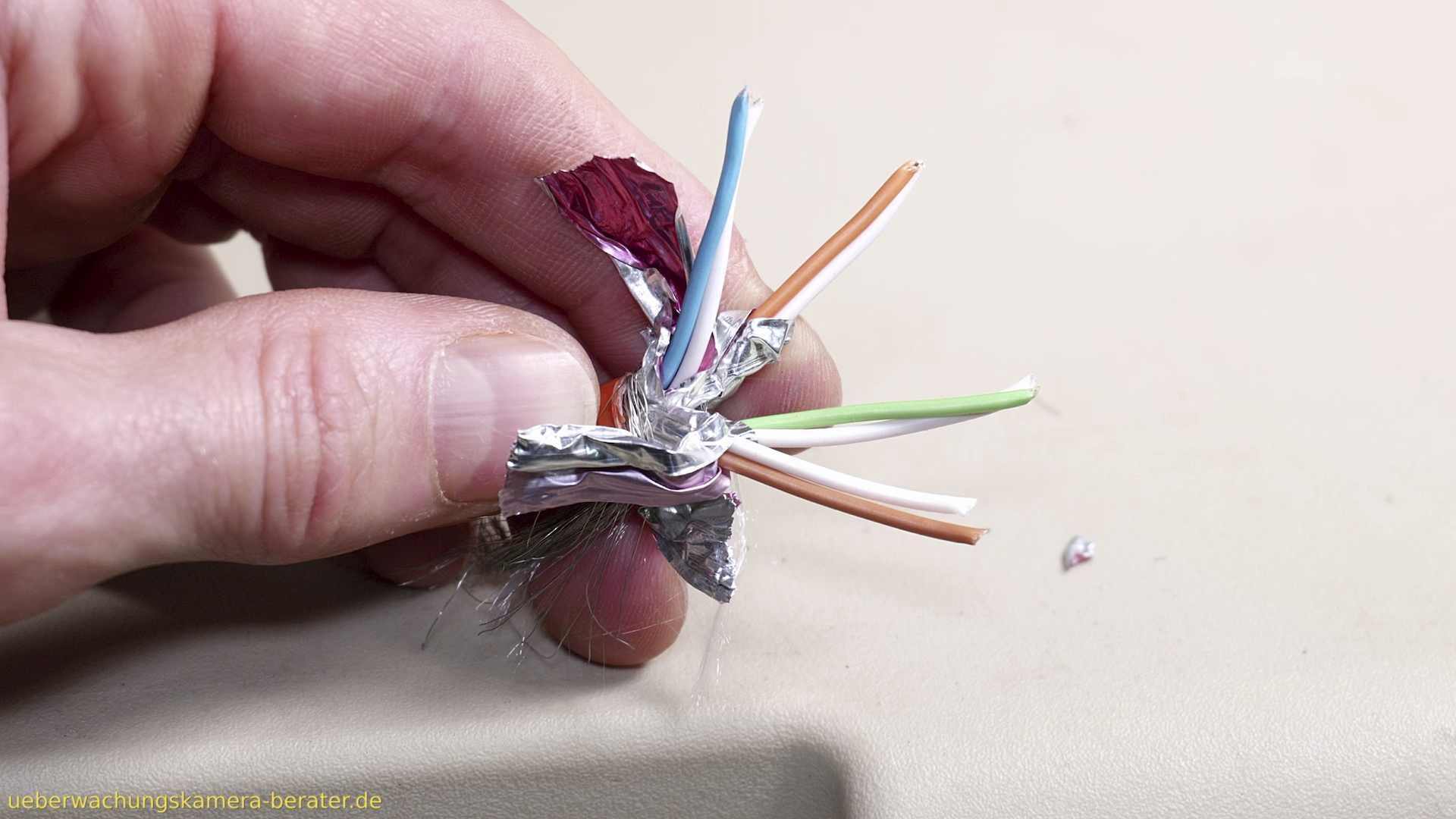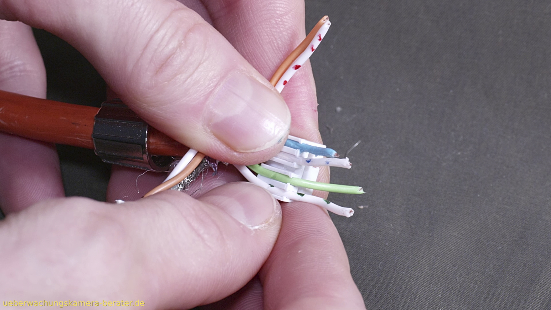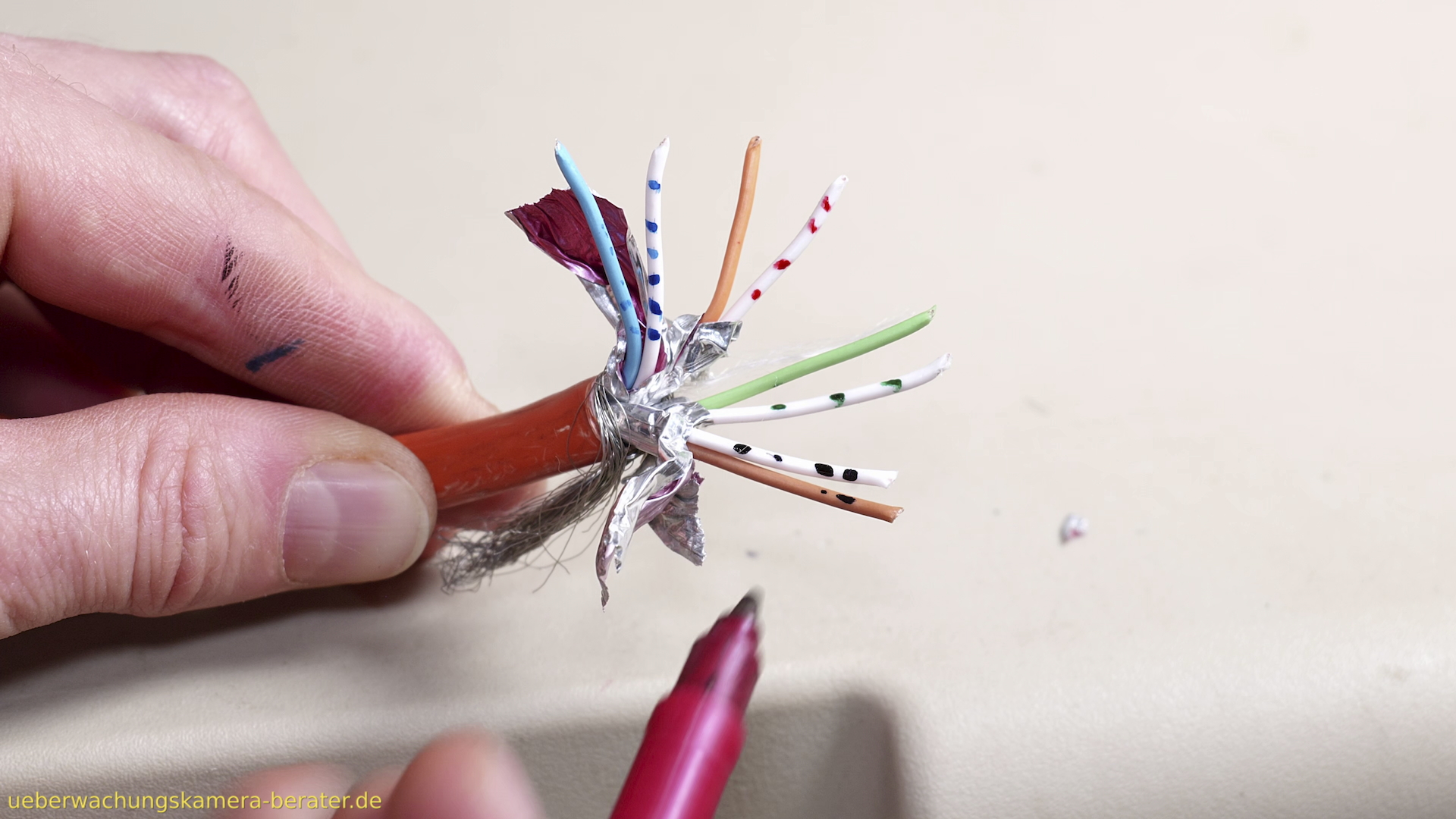 Falls diese zusätzlich ummantelt sind, entferne auch diesen Mantel. - In diesem Kabel befindet sich neben jeder farbigen Ader eine weiße Ader.