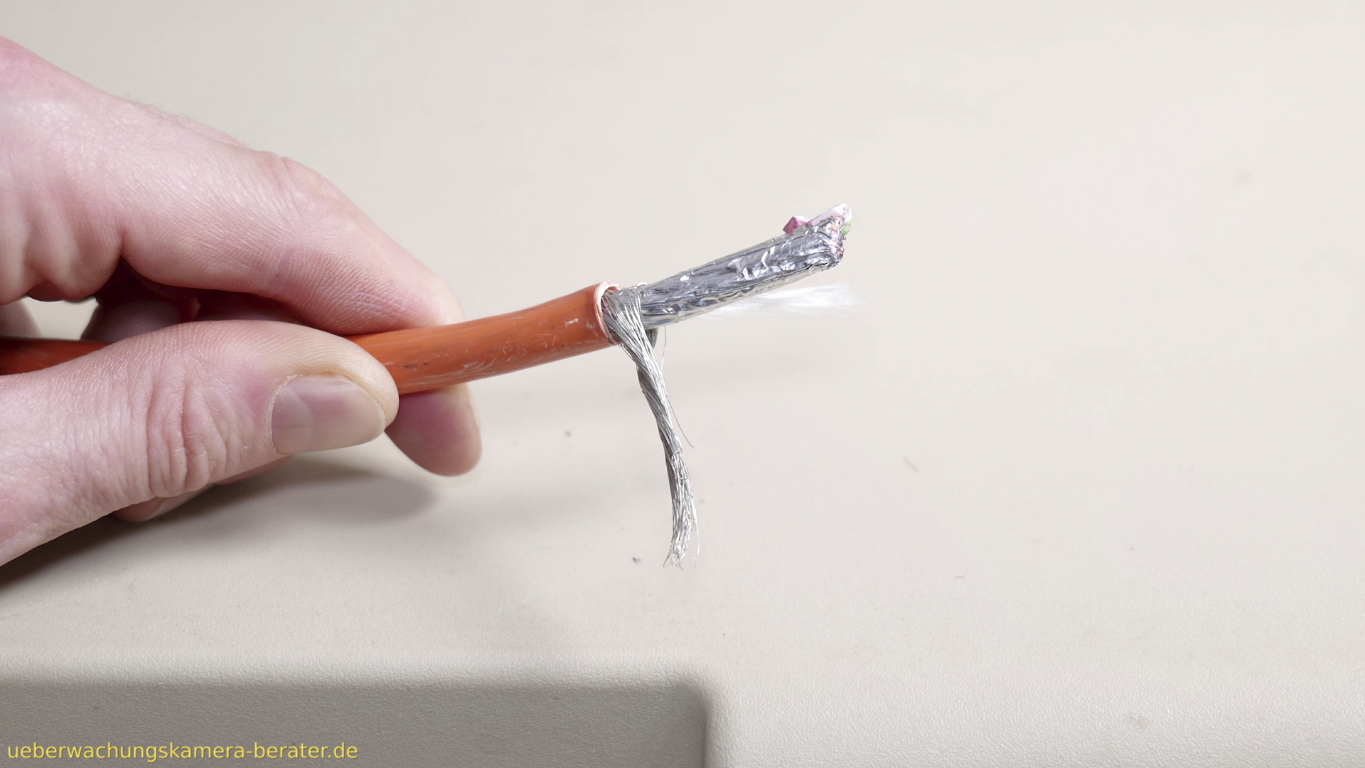 - Im Inneren siehst du die Abschirmung. Ziehe sie zurück und verdrille sie.