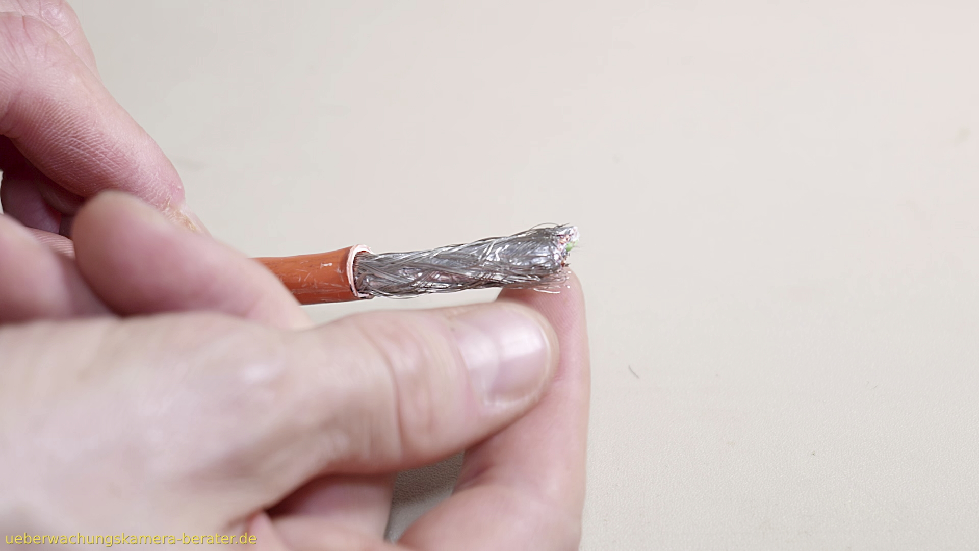 - Wickle die verdrillte Abschirmung um das Kabelende.