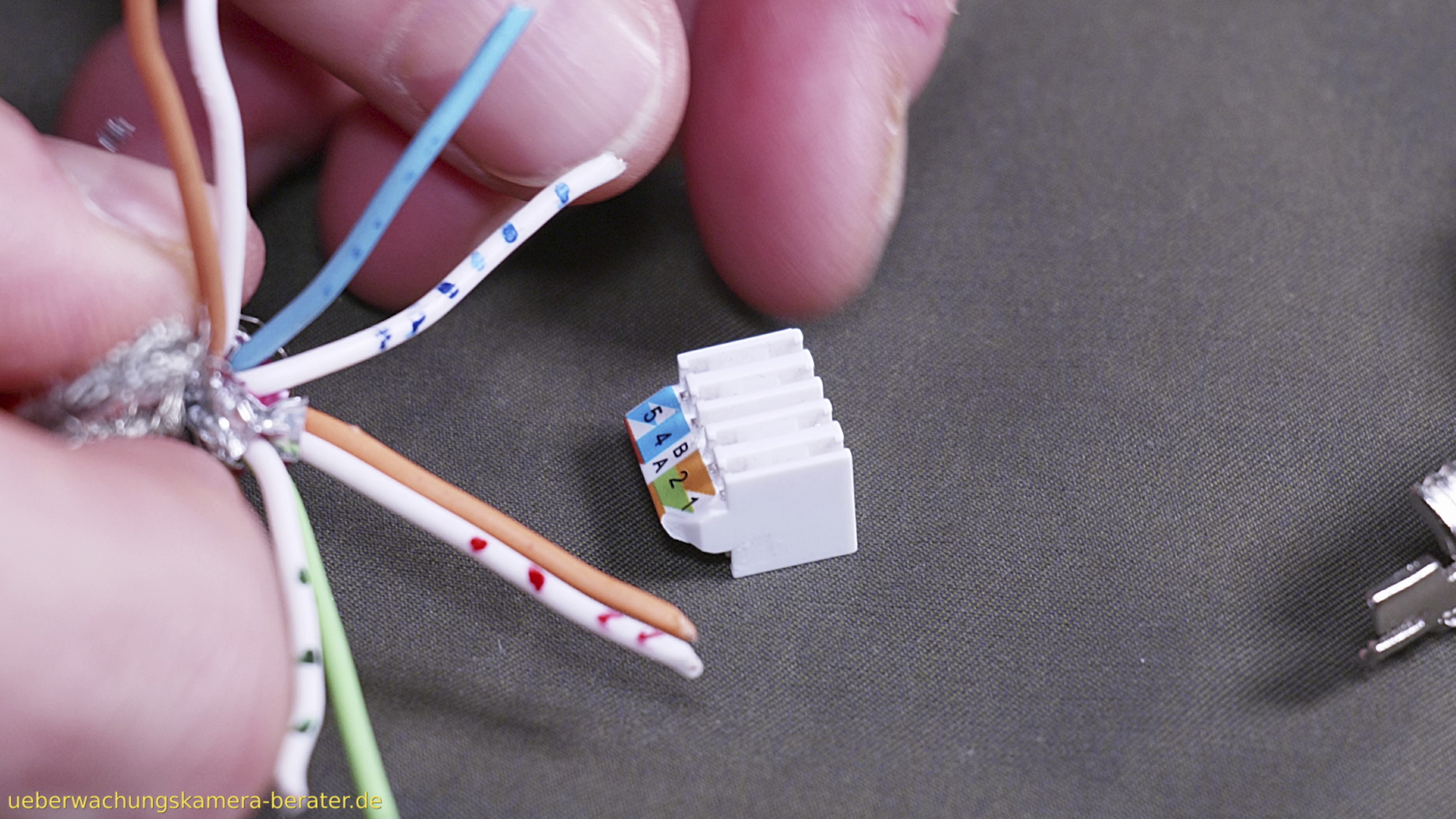 - Hier ist genau markiert, welche Ader in welchen Schlitz gehört.