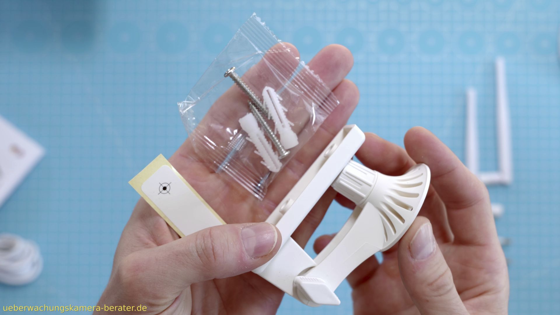 Die Halterung für die Kamera ist aus Kunststoff und das benötigte Montagematerial liegt bei.