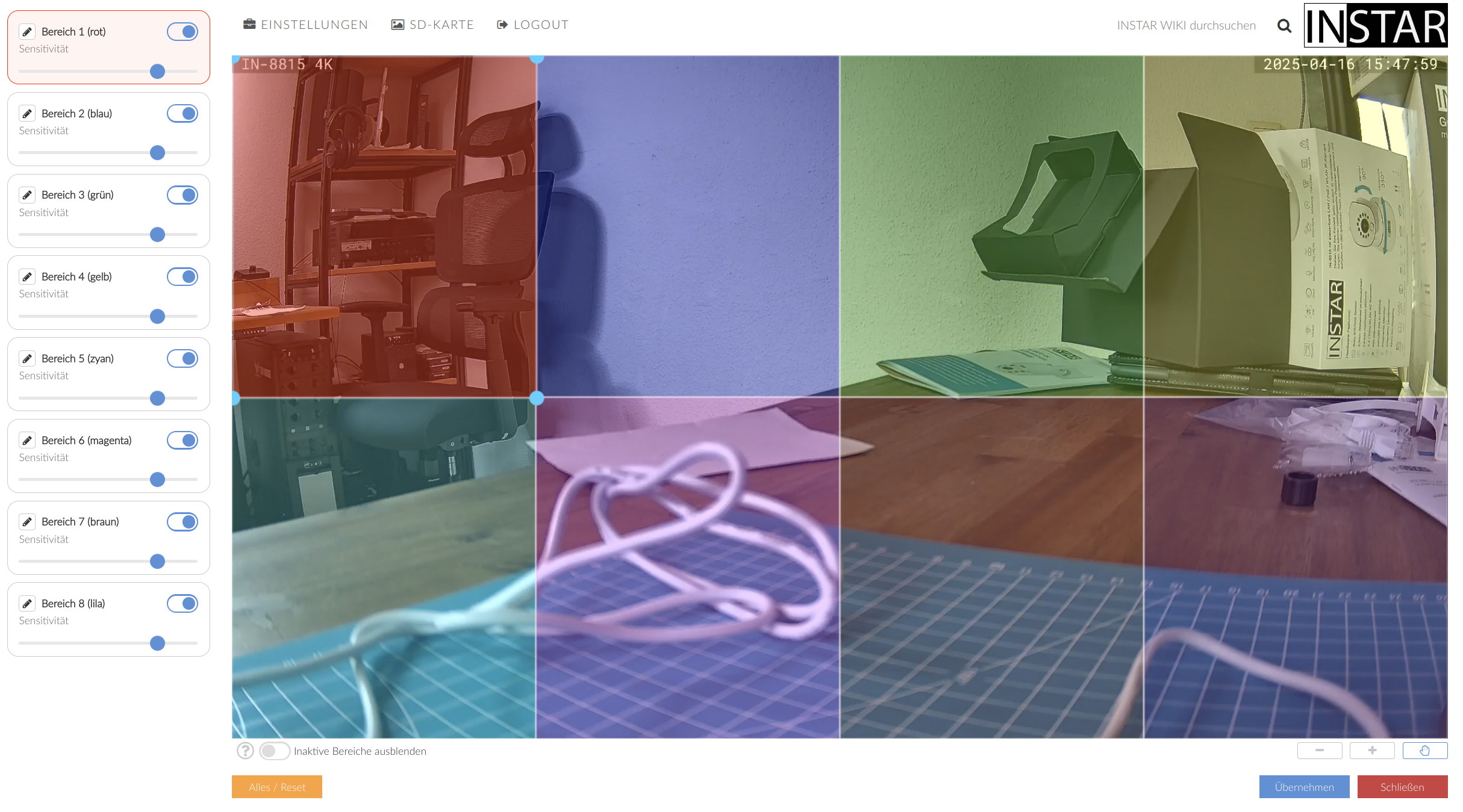 - Du kannst Bereiche festlegen, in denen die Kamera auf Bewegung reagiert.