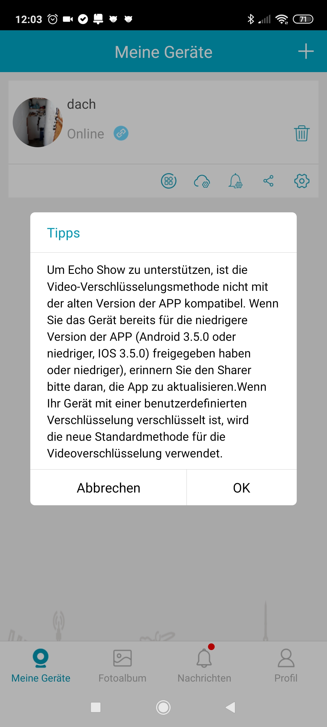 - Video Tonmeldung möglich, wenn wir den Stream in der App öffnen. Die Kamera macht dann eine Sprachausgabe und jemand weis das wir zuschauen.