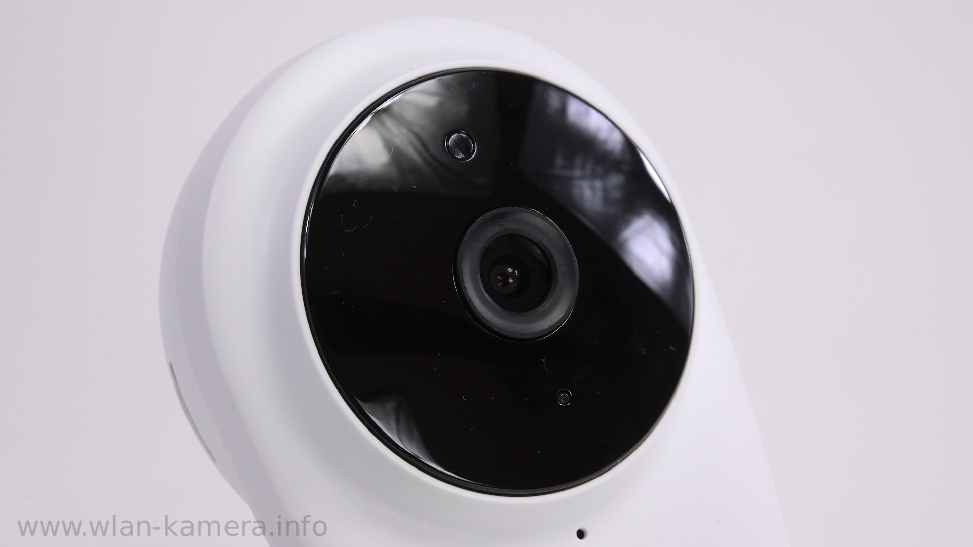 Vorne gibt es links und rechts neben dem Objektiv jeweils 4 IR-LEDs die bei Nacht leuchten. Unter dem Objektiv befindet sich eine LED die wir in der App aber auch deaktivieren können. Die LED blinkt grün, wenn die Kamera Video aufzeichnet. Das Mikrofon befindet sich hier clevererweise auch vorne, direkt unter der LED. Über dem Objektiv ist ein Fotowiderstand, den die Kamera benutzt um die Lichtsituation zu beurteilen und wenn nötig in die Nachtsicht zu wechseln.