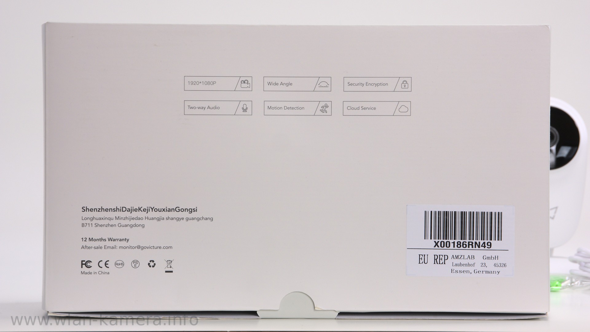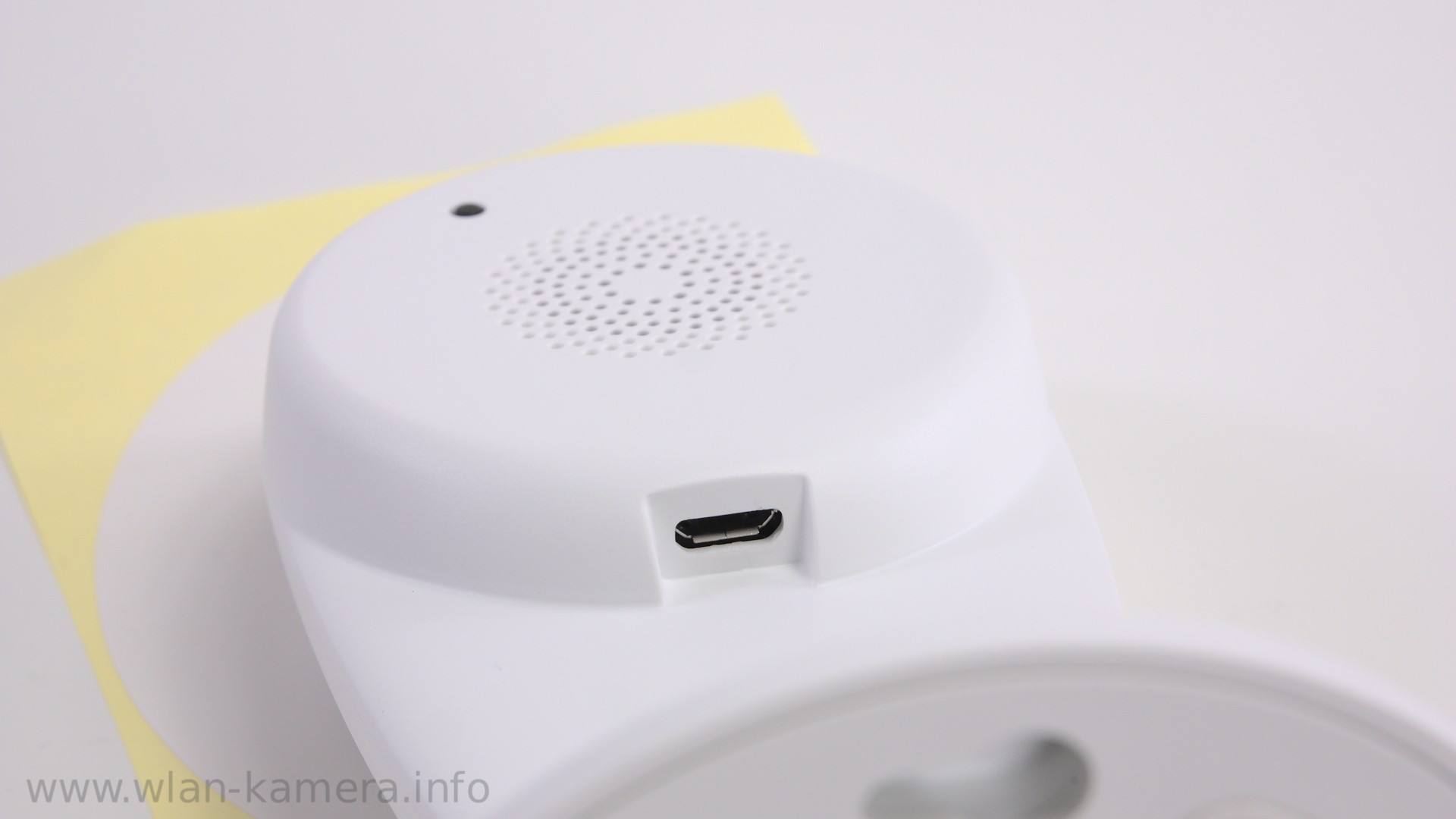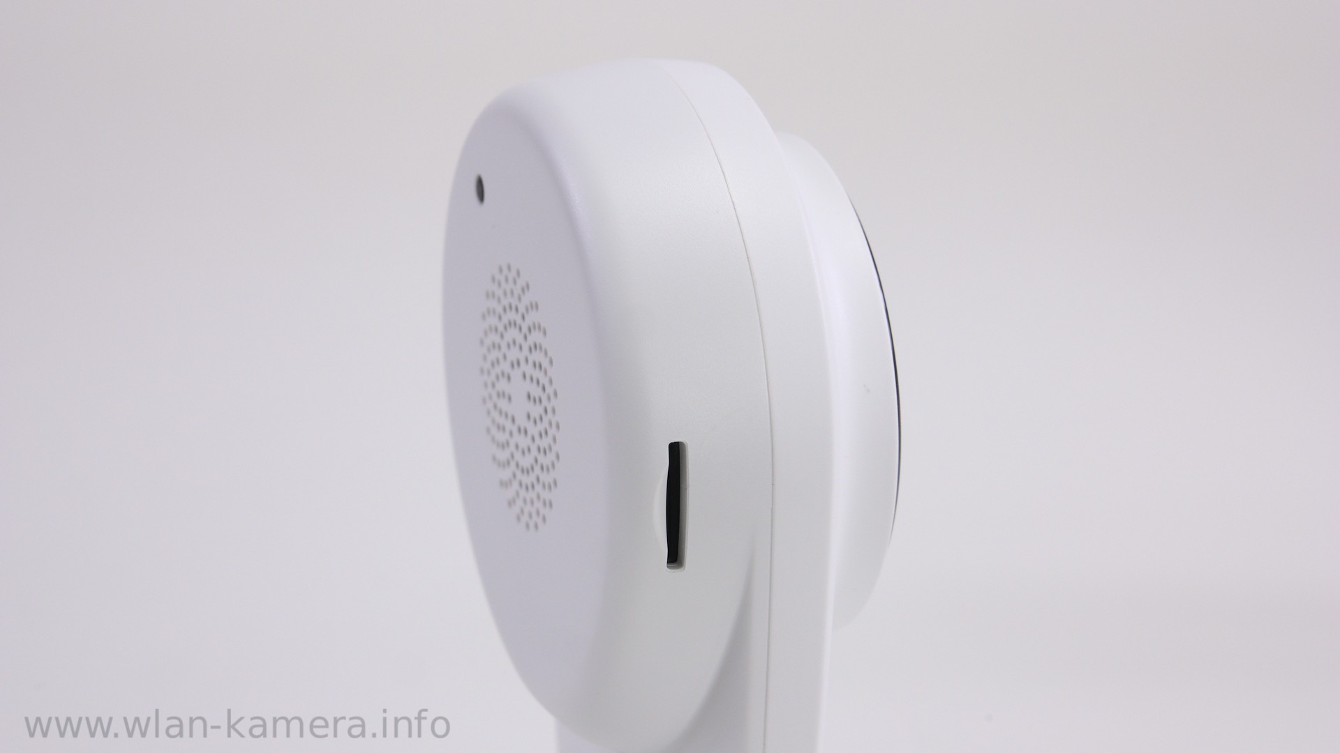 Der Lautsprecher klingt gut, auch wieder wie so eine kleine Sprechanlage. Er klingt einen Tick besser als bei der Azarton Kamera z.B. Den Lautsprecher sehen wir auch hinten dort wo die ganzen Löcher sind. Eine Testaufnahme mit dem Mikrofon gibt es im separaten Testvideo unten im Artikel. Auf der Rückseite sehen wir aber auch noch den Werksresetknopf.