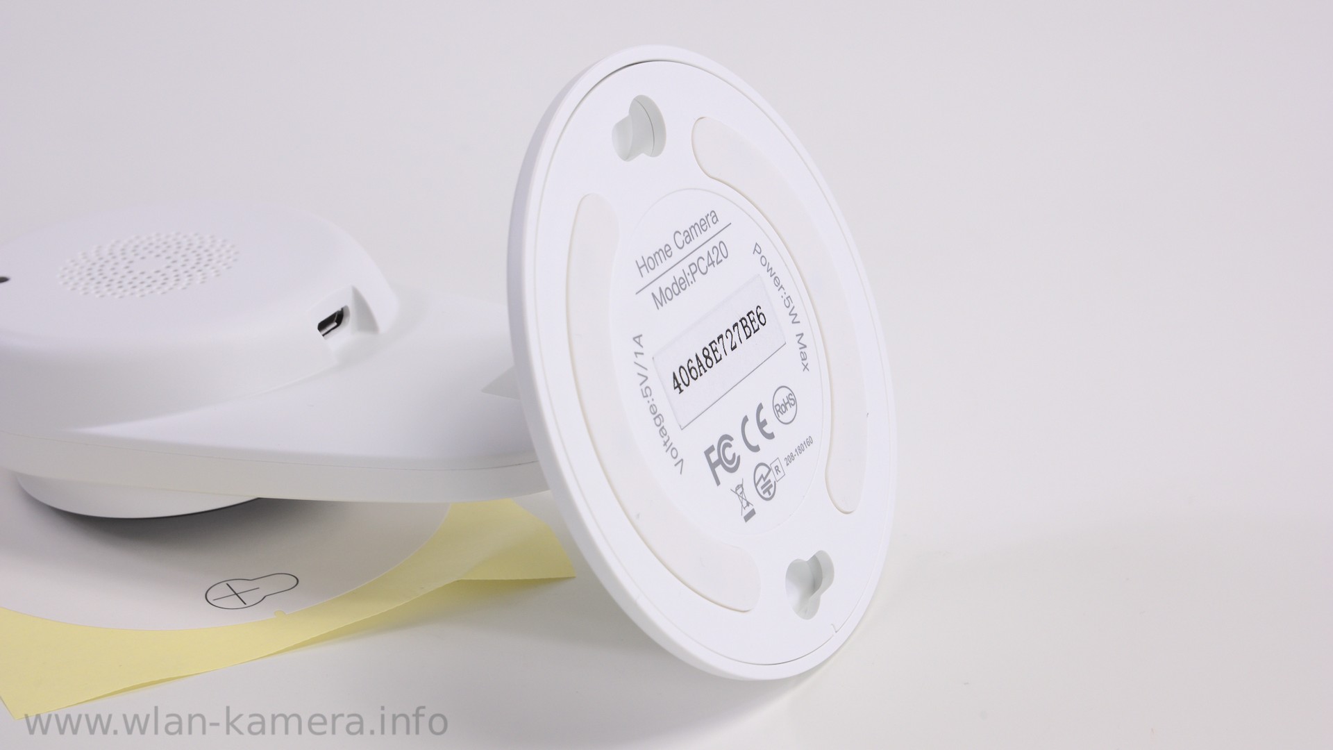 Eine Kamera wiegt um die 80 Gramm und das USB-Kabel hat eine Länge von um die 146 cm. Seitlich sehen wir einen SD-Slot für Mikro-SD-Karten mit bis zu 64 GB Speicherkapazität. Die Kamera kann permanent oder nur bei Bewegung auf diese SD-Karte aufnehmen.