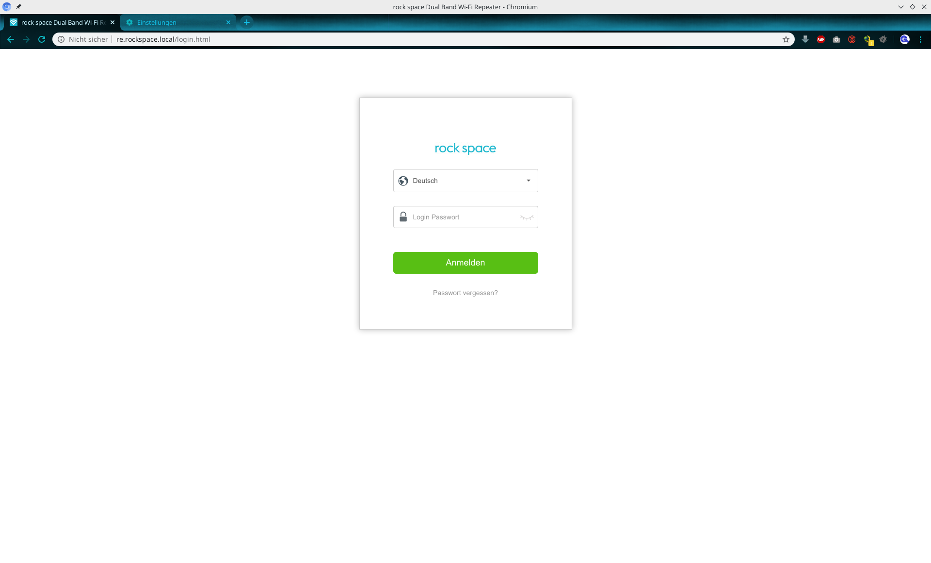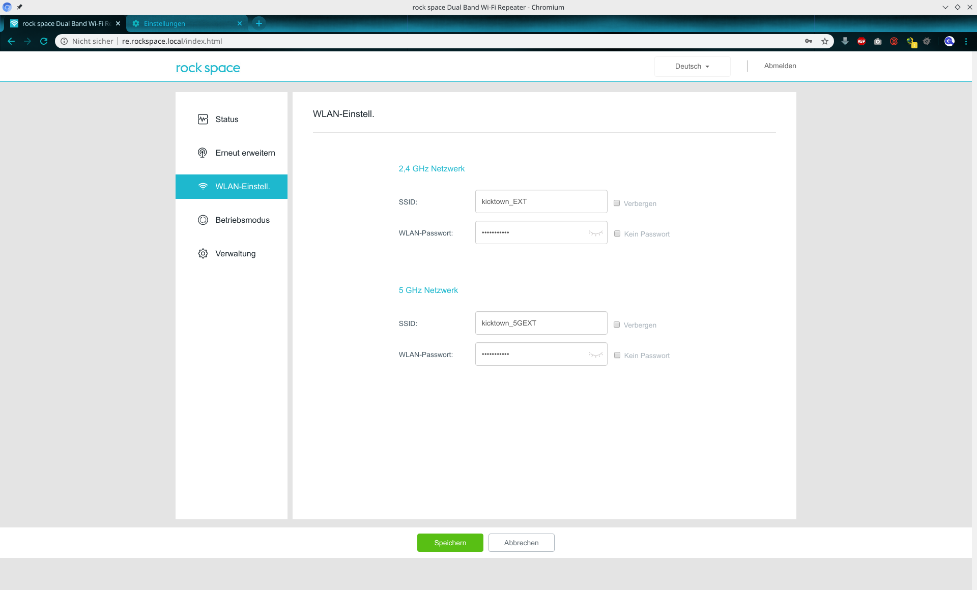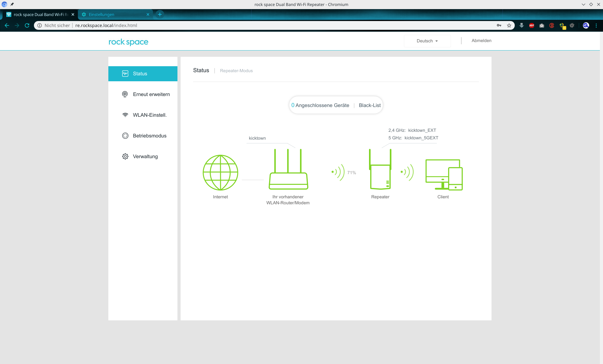 Weboberfläche des Rock Space WLAN-Repeaters
