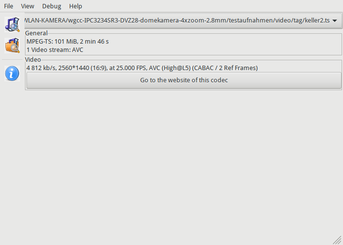 Folgende Daten entnehmen wir aus dem Bild. Auflösung: 2560 x 1440 Pixel, 4812 kb/s (hier sind Kilobit pro Sekunde gemeint!) mit 25 FPS(Bilder pro Sekunde). Die Datei hat eine Länge von 2:46(166 Sekunden) und ist 101 MB groß. Wir sehen dadurch auch, dass es sich um ein Video mit variabler Bitrate(VBR) handelt.