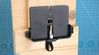 Die Klingel ist akkubetrieben und um den Akku aufzuladen wird der Monitor einfach aus der Halterung genommen und geladen. Theoretisch kannst du aber auch einfach rechts eine Powerbank an den Micro-USB-Ladeanschluss anschließen, dann musst du den Monitor zum Laden nicht ausdocken. Denn entfernst du den Monitor aus dem Sockel, dann ist die Klingel außer Betrieb. Ein 5V, 2A Netzteil geht aber auch (nicht im Lieferumfang enthalten).