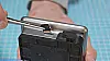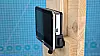 - Der Monitor wird aus der Halterung geschoben und das USB-C-Kabel der Klingel unten in den Sockel geschoben.