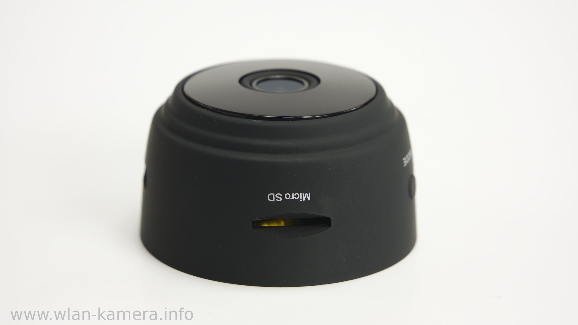 Die Kamera ist sehr kompakt und ihr Durchmesser beträgt unten etwa 4,4 cm und sie ist etwa 2,5 cm hoch. Ihr Gewicht liegt bei 30 Gramm. Am Objektiv vorne hat die Kamera IR-LEDs, welche im Dunkeln jedoch nicht leuchten. Der Vorteil ist, dass die Kamera so komplett unsichtbar ist.