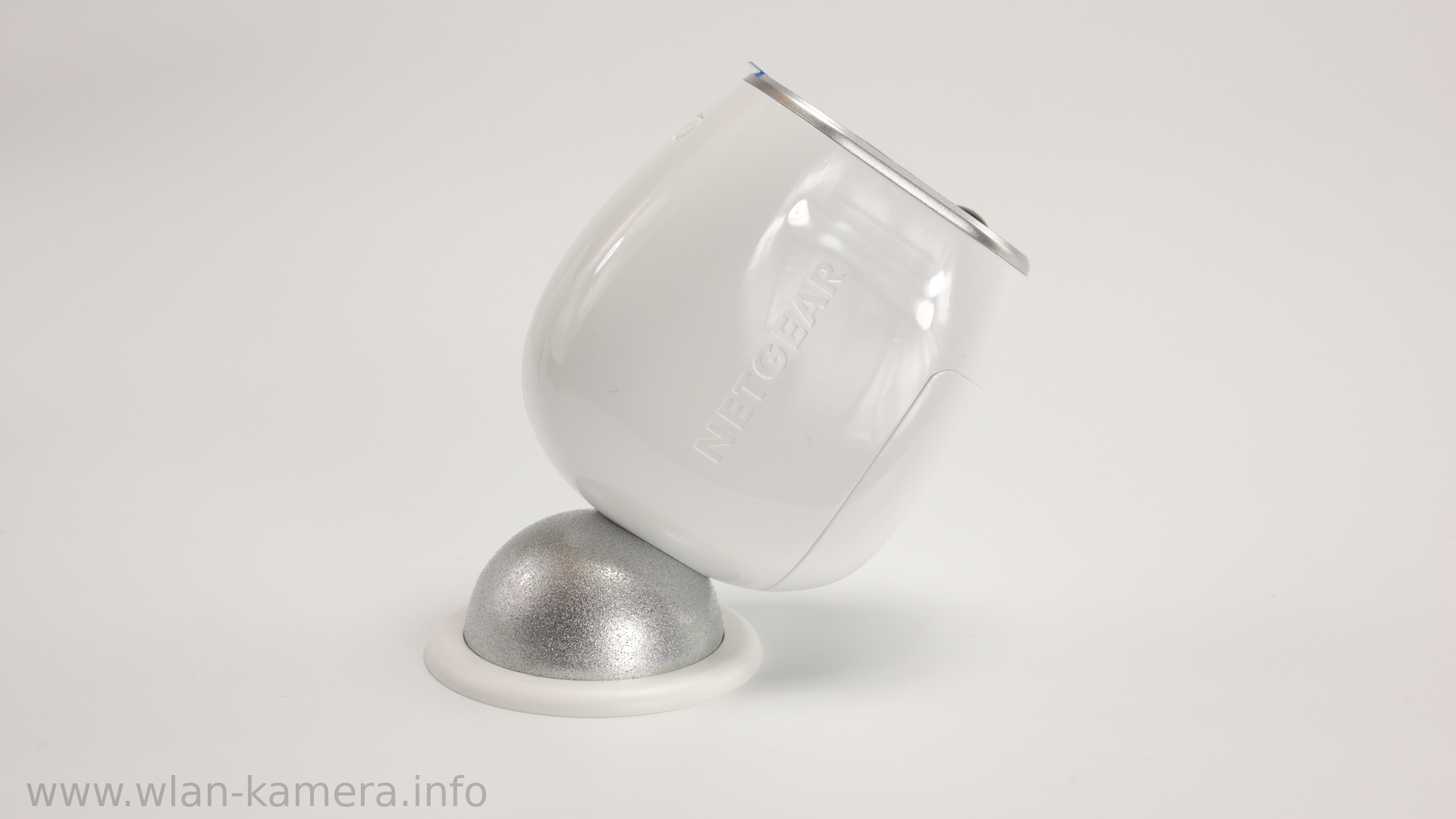 Für die Kameras ist jeweils eine Halterung, samt Schrauben und Dübeln, im Lieferumfang enthalten. Diese Halterung hat dir Form einer halben Eisenkugel, welche an die Wand geschraubt werden kann. Die Kameras selbst sind auf der Rückseite, dort wo die kleine Einbuchtung ist, magnetisch. Wenn wir die Kamera also an die Halterung heben so hält die Kamera dort magnetisch fest. Vorteil dieser Halterung ist, dass die Kamera ganz bequem und extrem flexibel in alle Richtungen gedreht werden kann. So kann die Kamera sehr leicht in alle erdenklichen Positionen gebracht werden.