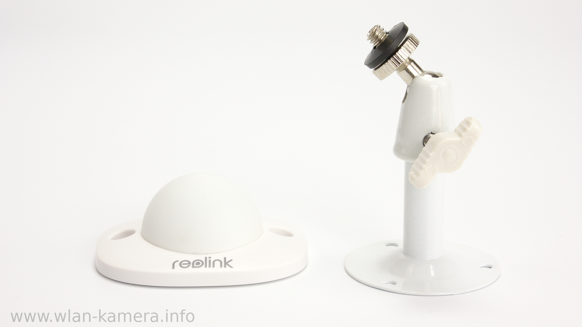 Im Lieferumfang der Reolink Argus sind zwei Halterungen enthalten. Die erste Halterung ist eine klassische Halterung, wie wir sie von vielen anderen Modellen kennen. Die Halterung wird einfach in das Gewinde auf der Unterseite der Kamera geschraubt. Die Halterung kann dann an die Wand geschraubt werden und erlaubt es, die Kamera in nahezu jedem Winkel zu positionieren, je nachdem wie man die Halterung dreht.