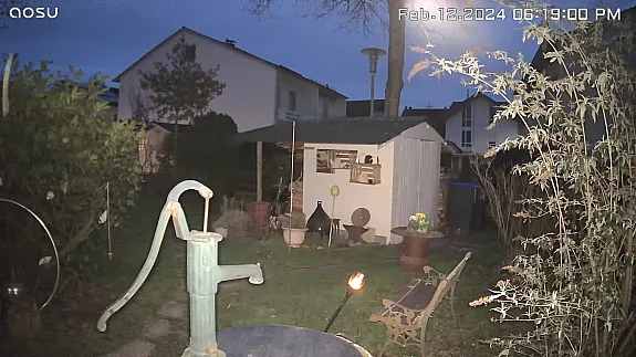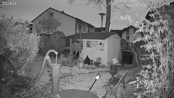 Wird ein Eindringling erkannt, dann folgt die Kamera der Bewegung automatisch. Die Bewegungsverfolgung zieht hier im Garten allerdings gerne mal nach oben in den Baum.